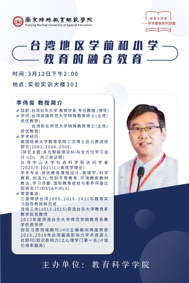【学术预告】3月12日 betway西汉姆联 台湾地区学前和小学教育的融合教育