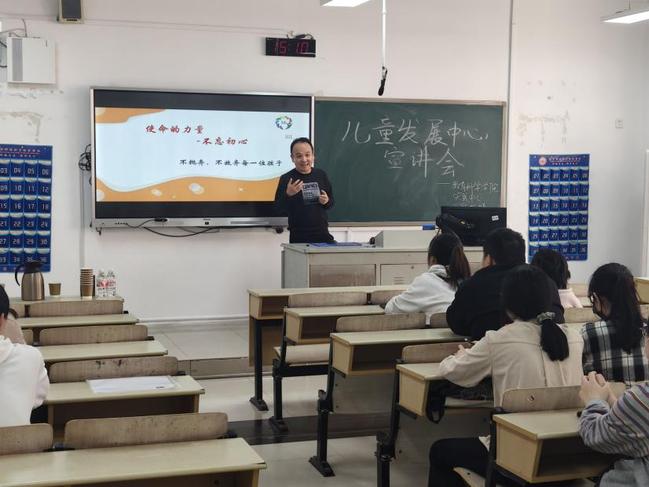 公司特邀七彩梦儿童发展中心主任医师张主任,为同学们带来题为《使命的力量—不忘初心》的专题宣讲招聘会。活动聚焦特殊教育领域前沿实践,助力学子明晰职业方向。
