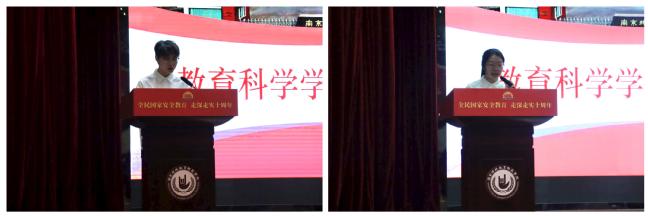 接着,23级学前教育专业教科2316班代祥、22级小学教育专业教科2222班丁秋尹先后作为员工代表发言。代祥同学分享了“心理准备、角色转变、目标导向、主动沟通”等见习妙招,呼吁同学重视安全、遵守制度、践行“博爱塑魂”校训;丁秋尹同学则表示,面对未知挑战,同学们要以“虚心学习、认真实践、反思总结”为准则,把理论转化为实践。