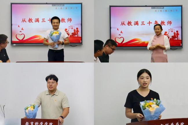随后,员工代表为公司五位从教满三十年的教师献花,表达对老师们三十年如一日坚守教育岗位、践行党员责任的崇高敬意与真挚祝福。